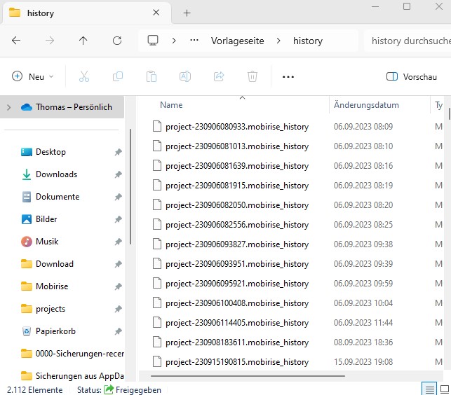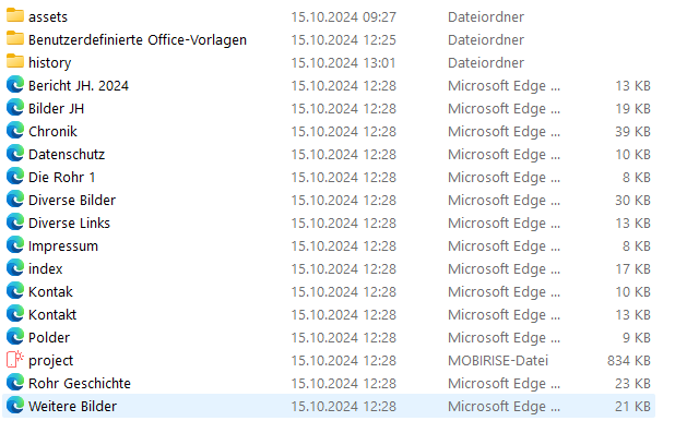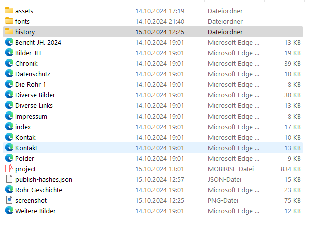 Wenn Du das Verzeichnis "history" von Mobirise öffnest, dann sehen die Dateien darin ungefähr so aus.