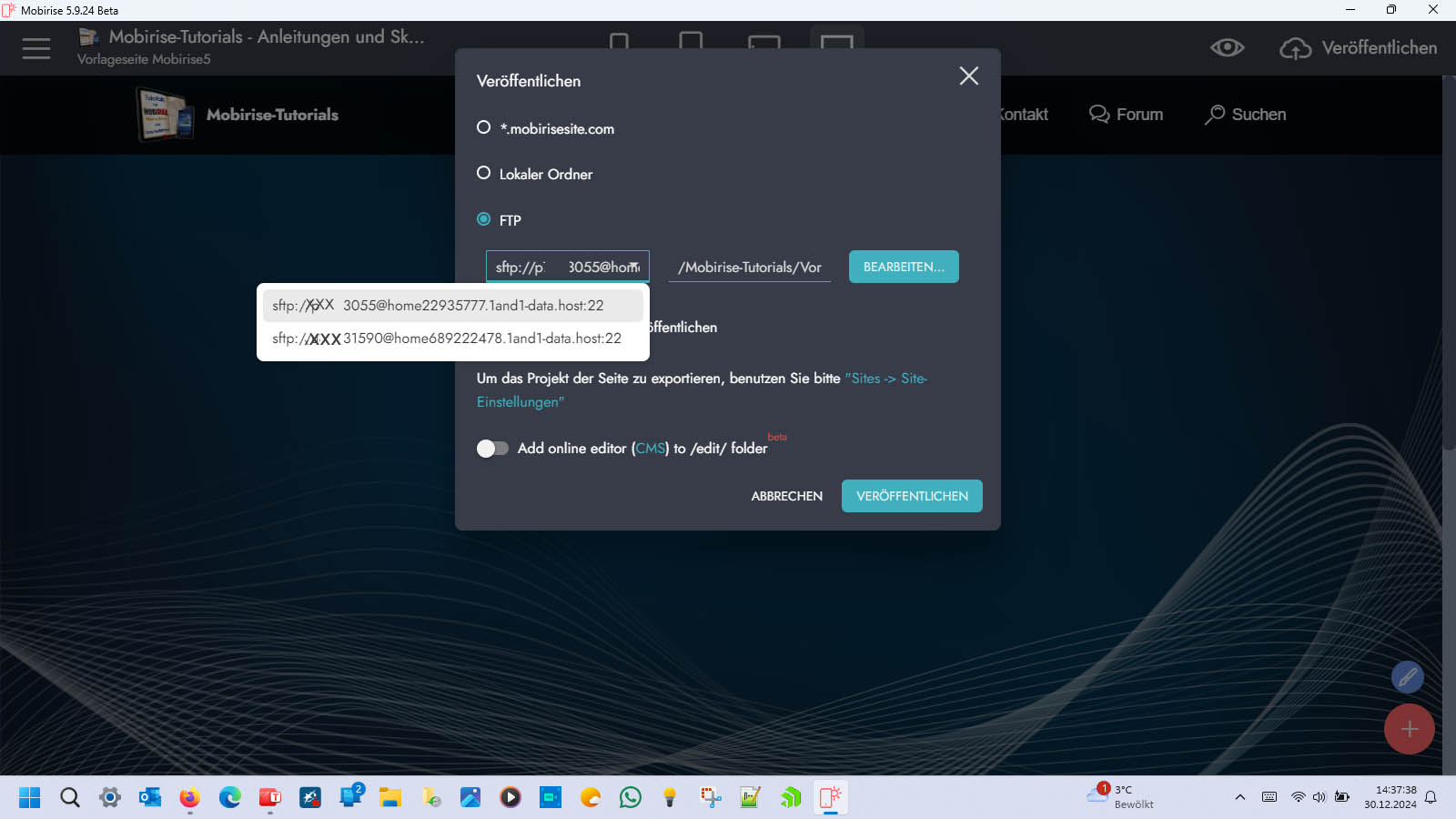 https://www.mobirise-tutorials.com/Publizieren.html