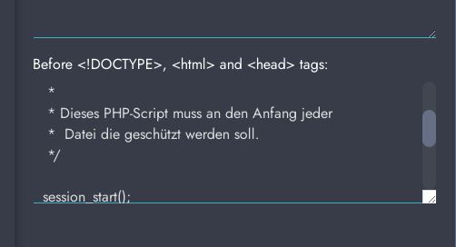 Achte darauf, dass in diesem Bereich, der noch vor dem <DOCTYPE> (Dokumententyp) der Seite liegt, keine Leerzeichen vor oder hinter dem PHP Skript stehen dürfen: