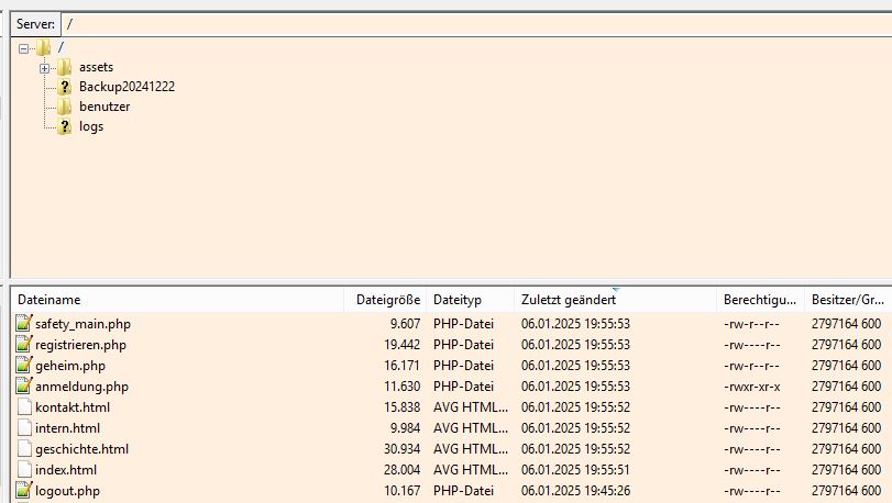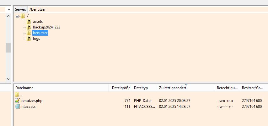 Ich sehe in Deinem Screenshot nur den Ordner Benutzer, aber die anmeldung.php, geheim.php sehe ich nicht in dem Verzeichnis.