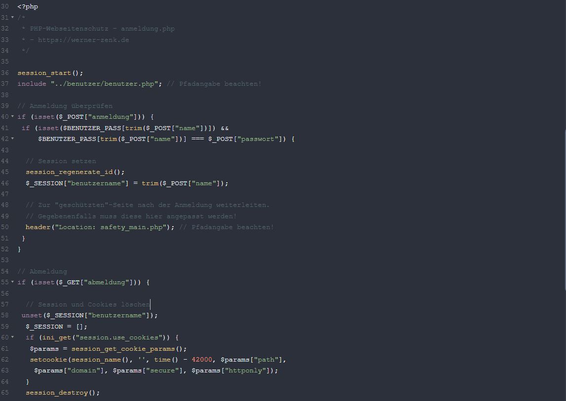 Hinweis - Werner hatte da noch eine Variante "Seitenschutz", mit MySQL-Datenbank, für eine bessere Benutzerverwaltung: