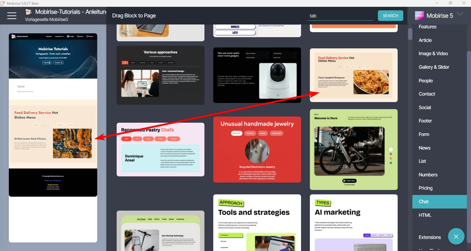 Nun habe ich sämtliche angebotenen Tabs ausprobiert. Leider funktioniert kein einziger. Das Problem äußert sich in der Form, dass alle Tabs nach dem veröffentlichen direkt untereinander angezeigt werden. Die Tab-Funktion hat keinerlei Effekt. In Mobirise selbst funktioniert alles ohne Probleme. Die Seite selbst kann ich hier leider nicht veröffentlichen.