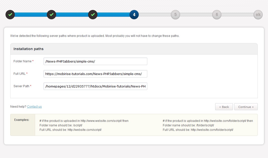 Ja natürlich muss die URL in der Anwendung von "PHPJabbers" mit der tatsächliches URL übereinstimmen, also schon bei der Installation der Datenbank muss die später verwendete (nicht irgendwelche Umleitung) URL stimmen:
