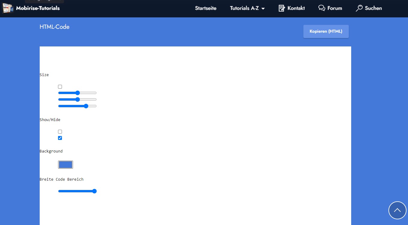 Hier mal auf die Schnelle ein Block zum EInfügen von Code in Mobirise, den der User per Button Kopieren kann: