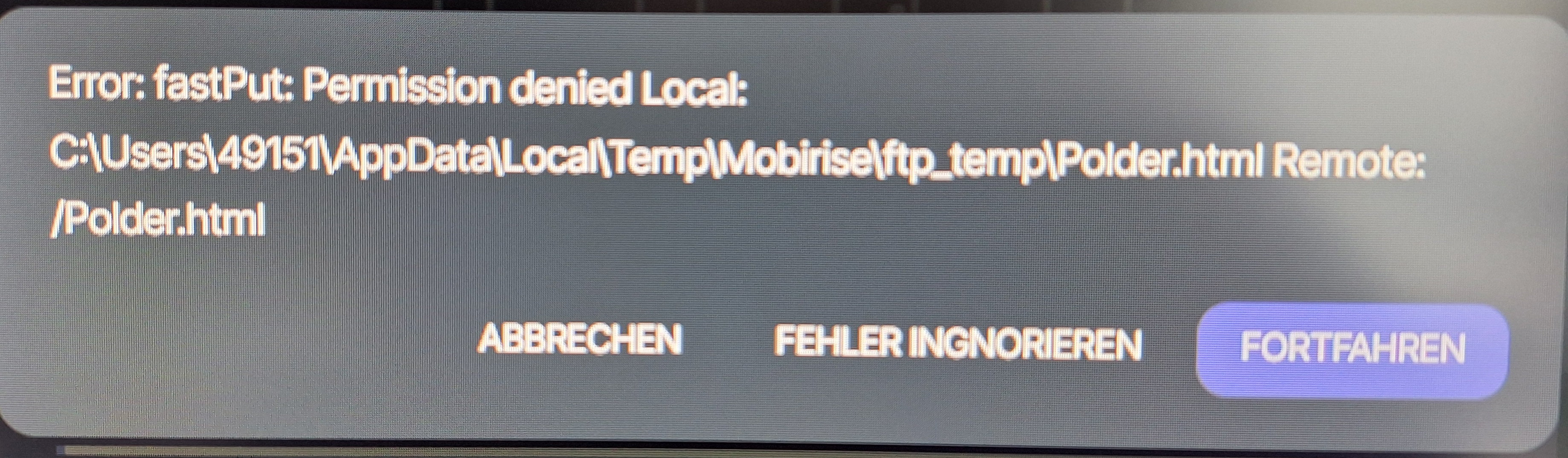 Übrigens kann ich auch vom PC aus per FileZilla auf den Ionos-Server zugreifen, was ja eigentlich Mobirise machen soll. Nur, um diese Fehlerquelle auszuschließen.