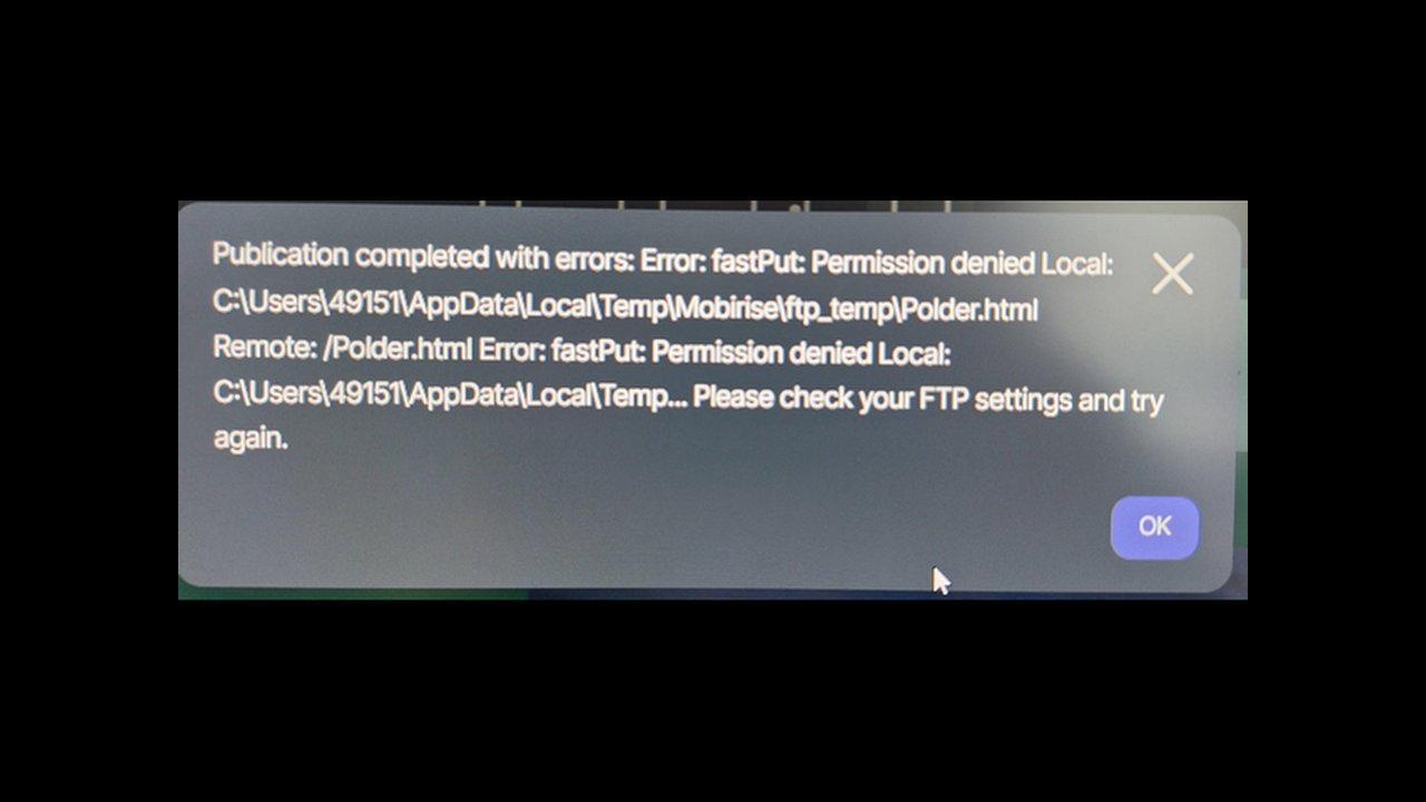Auch hier alles wunderbar. Außer: Trotz identischem Projekt, identischem Account (in Mobirise), gleichem Zugang zum Ionos-Server, gleichem Wlan usw. kann ich nur mit dem Laptop per FTP veröffentlichen, nicht mit den neuen PC.