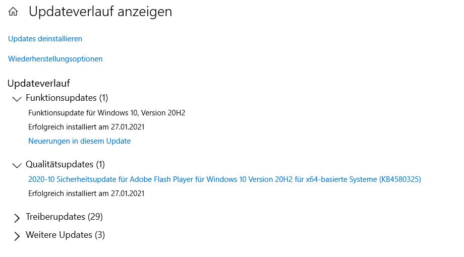 Ein klein wenig weiter unten unter "Updateverlauf anzeigen" werden dann deine Updates aufgelistet.