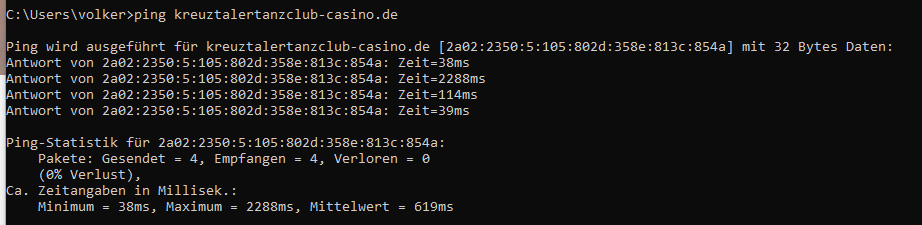 Das sagt schon einiges über die Serveranbindung nach Deutschland aus