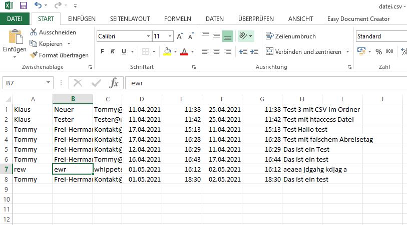 Natürlich darf dabei diese CSV-Datei nicht in falsche Hände geraten, denn dort stehen ja dann alle Buchungen mit ganz unterschiedlichen Teilnehmern und persönlichen Daten drinnen.