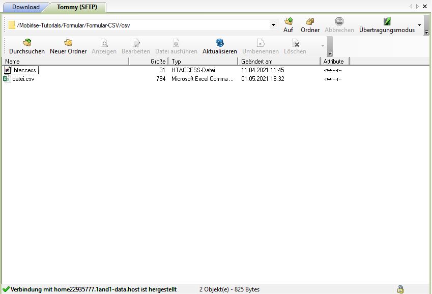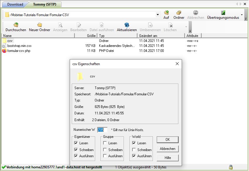 erstellt. Also das Verzeichnis "csv" liegt hier im gleichen Verzeichnis wie die Seite mit dem Script (bei mir also mit dem Formular).