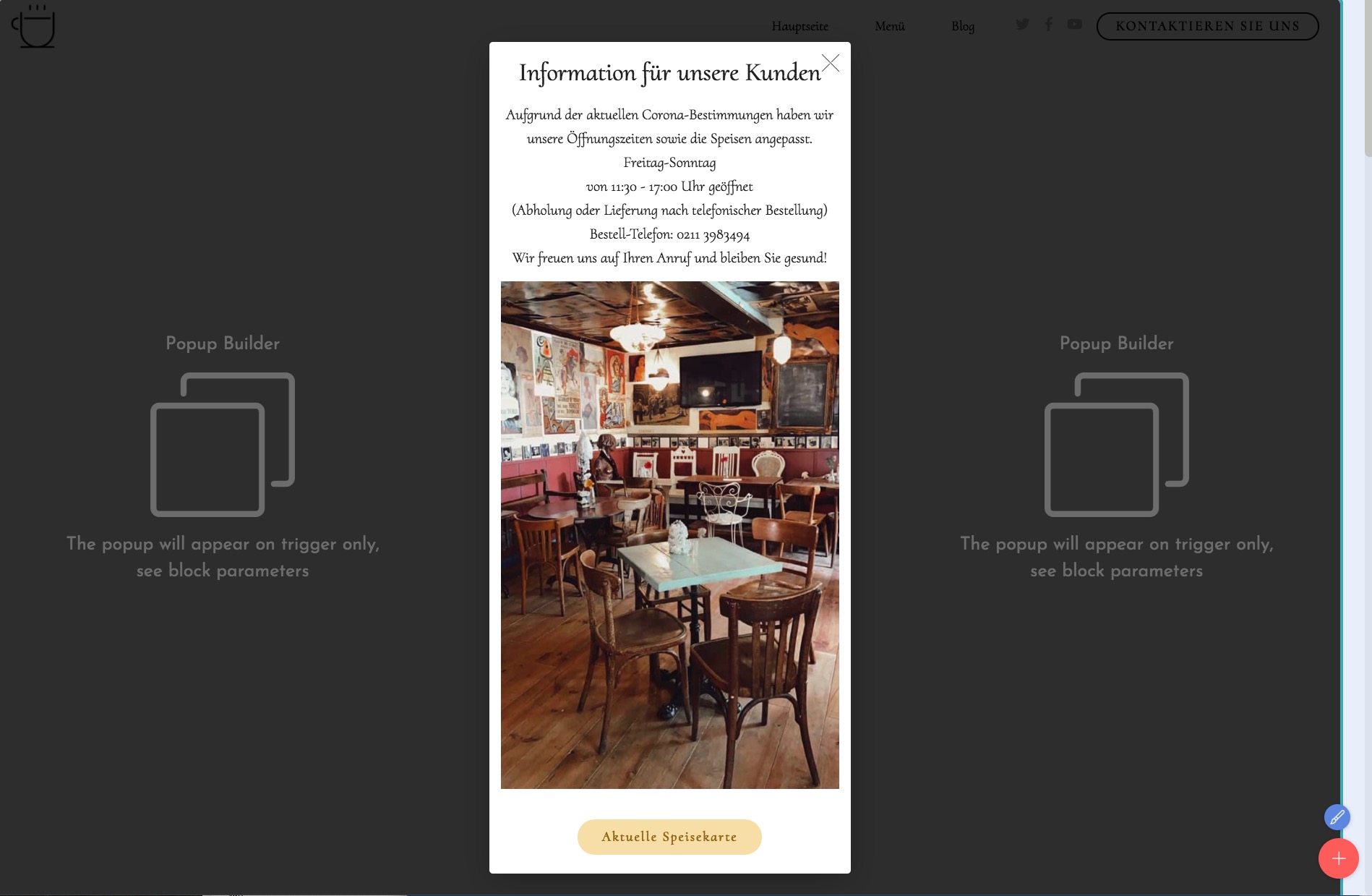Ich möchte gerne ein Popupfenster (Info Fenster für ein Restaurant) direkt beim betreten der Seite bauen.