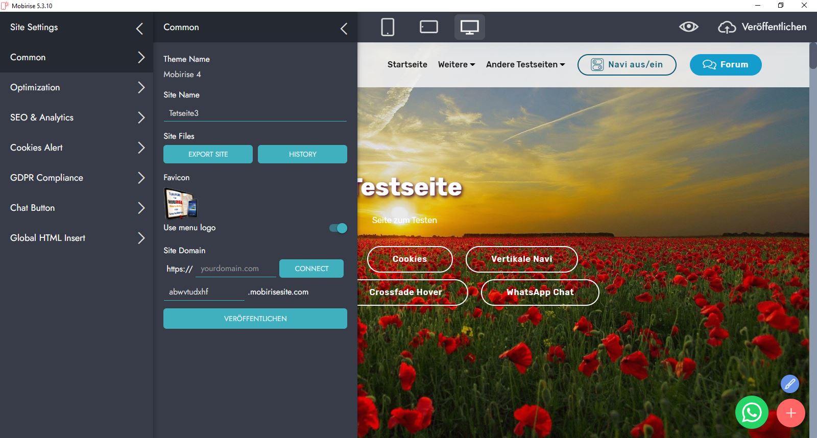 Mobirise importiert dann selbst die gewählte Version. So kann man auch jederzeit eine Version, die man vielleicht gerade irgendwie falsch bearbeitet hat, wieder herstellen.