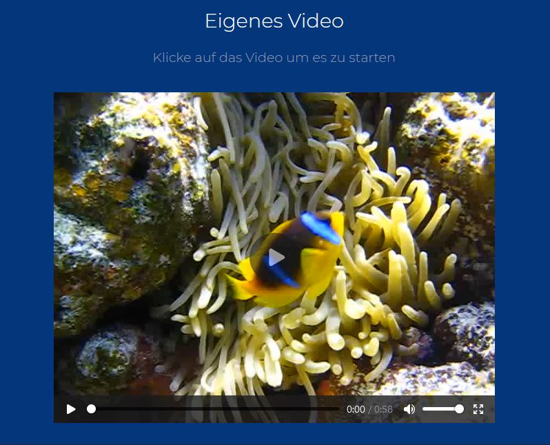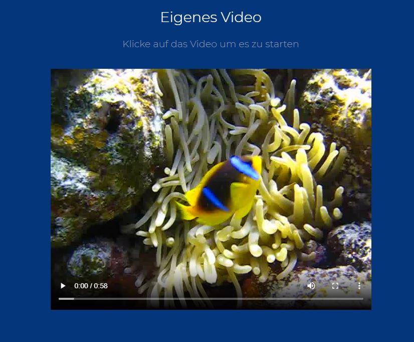 Da Mobirise nur Blöcke anbietet, die Videos von "YouTube" und anderen Video-Plattformen anzeigen, zeige ich hier das einfache HTML5 Video-Tag, zu dem ich hier eine Beispielseite habe: