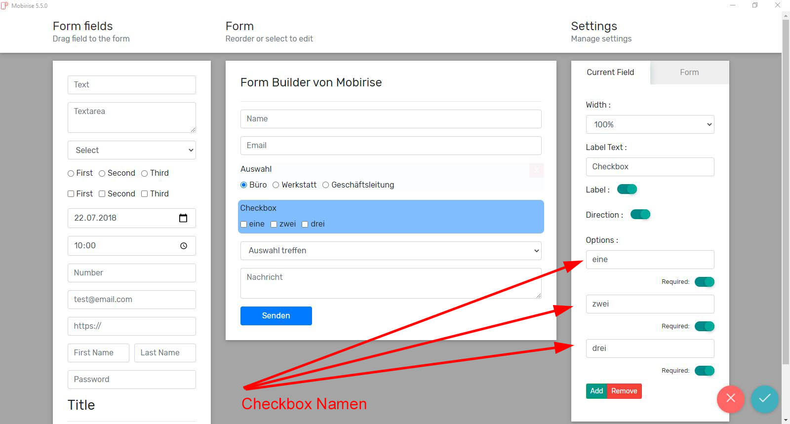 Leider kann ich bei den Checkboxen im Form Builder keinen "Name" vergeben.