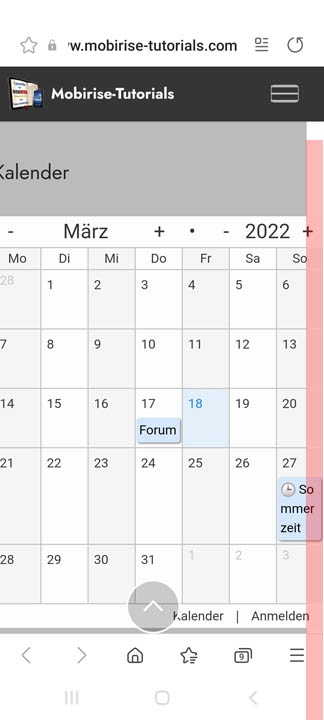 Nun ist aber leider die Breite am Handy nicht mehr responsive, es gibt einen kleinen Querscroller und der Kalender passt nicht mehr ganz auf das Display: