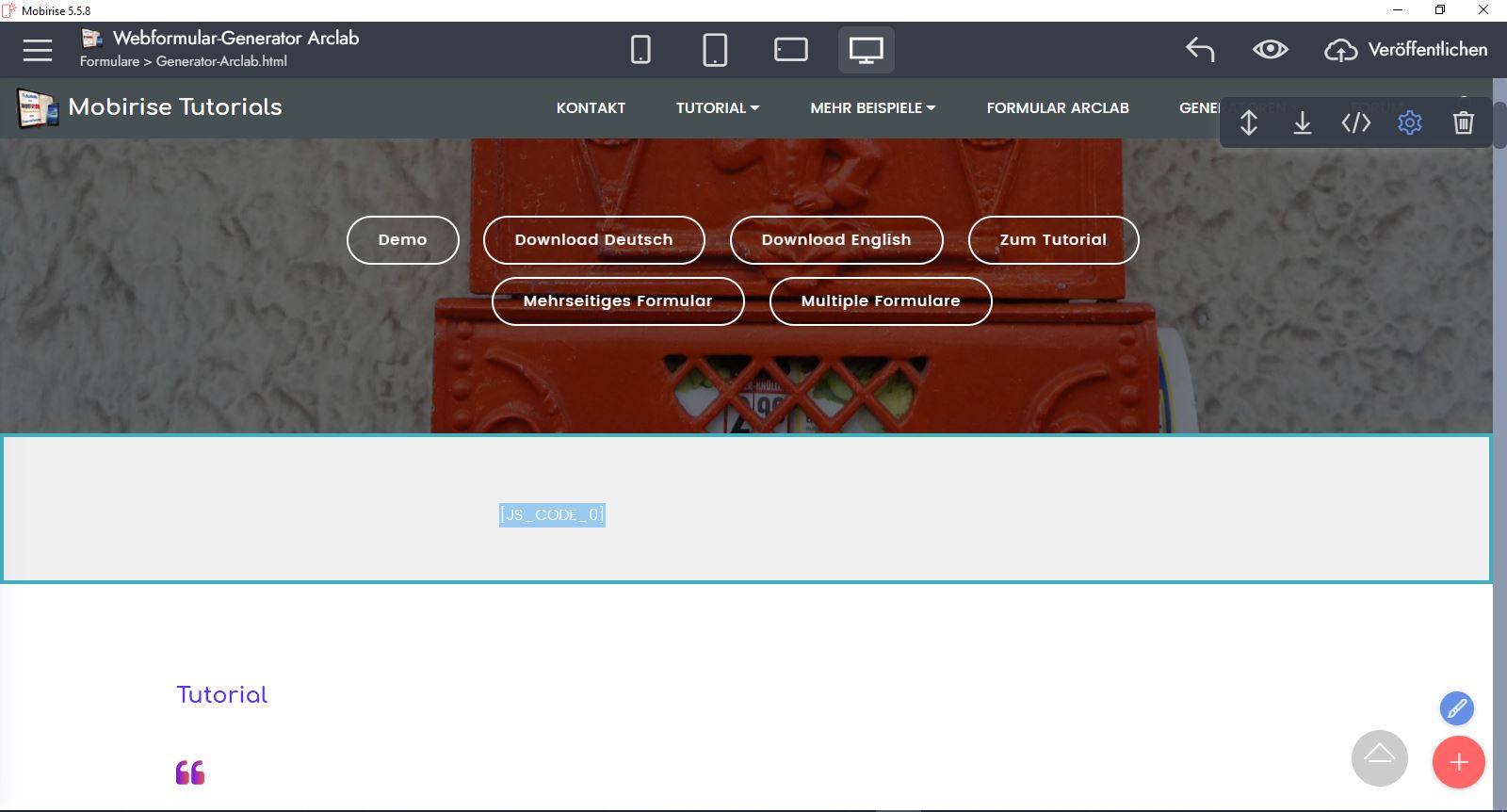 Mobirise 5.5.8 und Arclab Formulargenerator