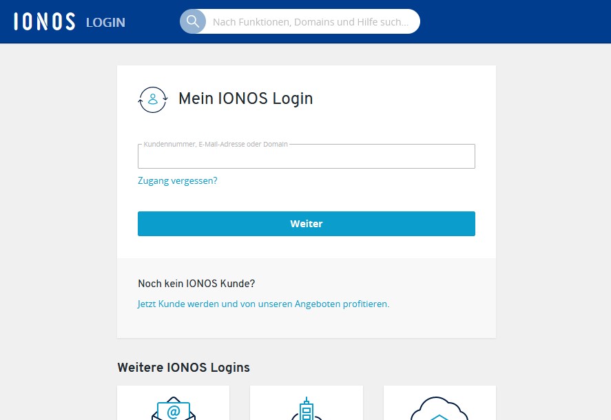 Melde Dich nach dem Klick an diesem Link mit Deinen Zugansdaten bei 1&1 IONOS an: