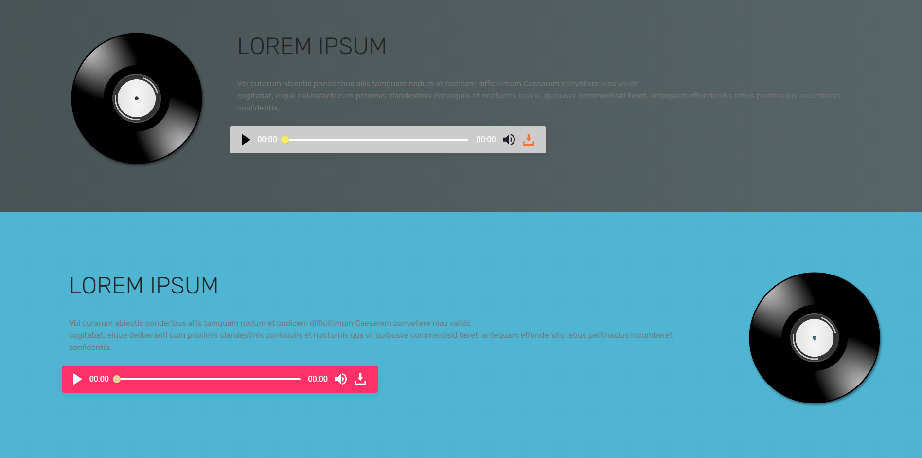 Dieser Audio-Player hat natürlich den Vorteil, dass er einfach in Mobirise zu integrieren ist und dass er in allen Browsern gleich aussieht. Das HTML5 Audio Tag stellt sich ja dagegen unterschiedlich, je nach Browser, dar.