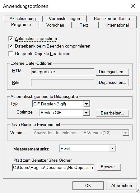 Meine Publizierungseinstellungen: Und ich hatte von Tommy (?) den Rat erhalten, dass NOF zuerst deinstalliert und dann wieder installiert werden müsse......