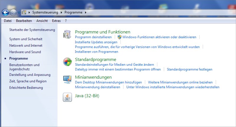 Ich würde auch zusätzlich JAVA 64bit installieren, wenn Du einen 64bit Rechner hast.