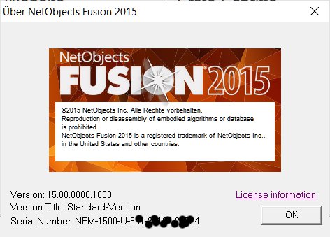 Du gehst über den Hilfe-Button -> Über Netobjets Fusion 2015 . . . -> dann bekommst du dieses Bild