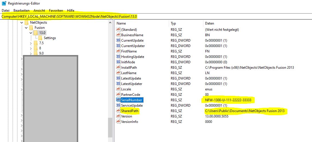 Wie komme ich an die Registry "Computer\HKEY_LOCAL_MACHINE\SOFTWARE\WOW6432Node\NetObjects\Fusion\13.0" ?