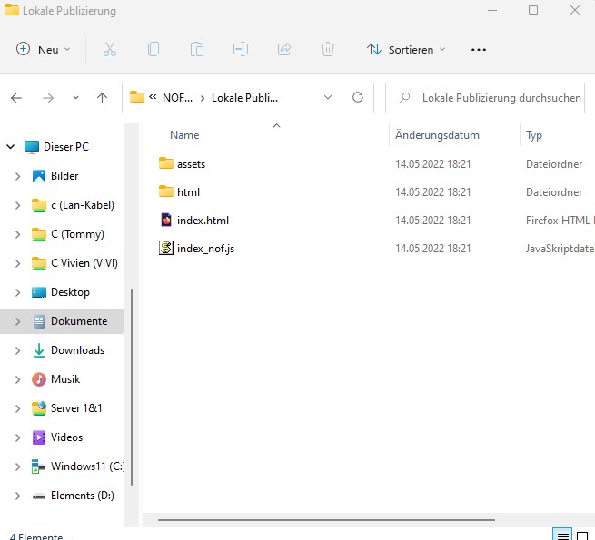 Wenn Du dieses lokale Verzeichnis öffnest muss die Datei index.html direkt unter all den Ordnern liegen.