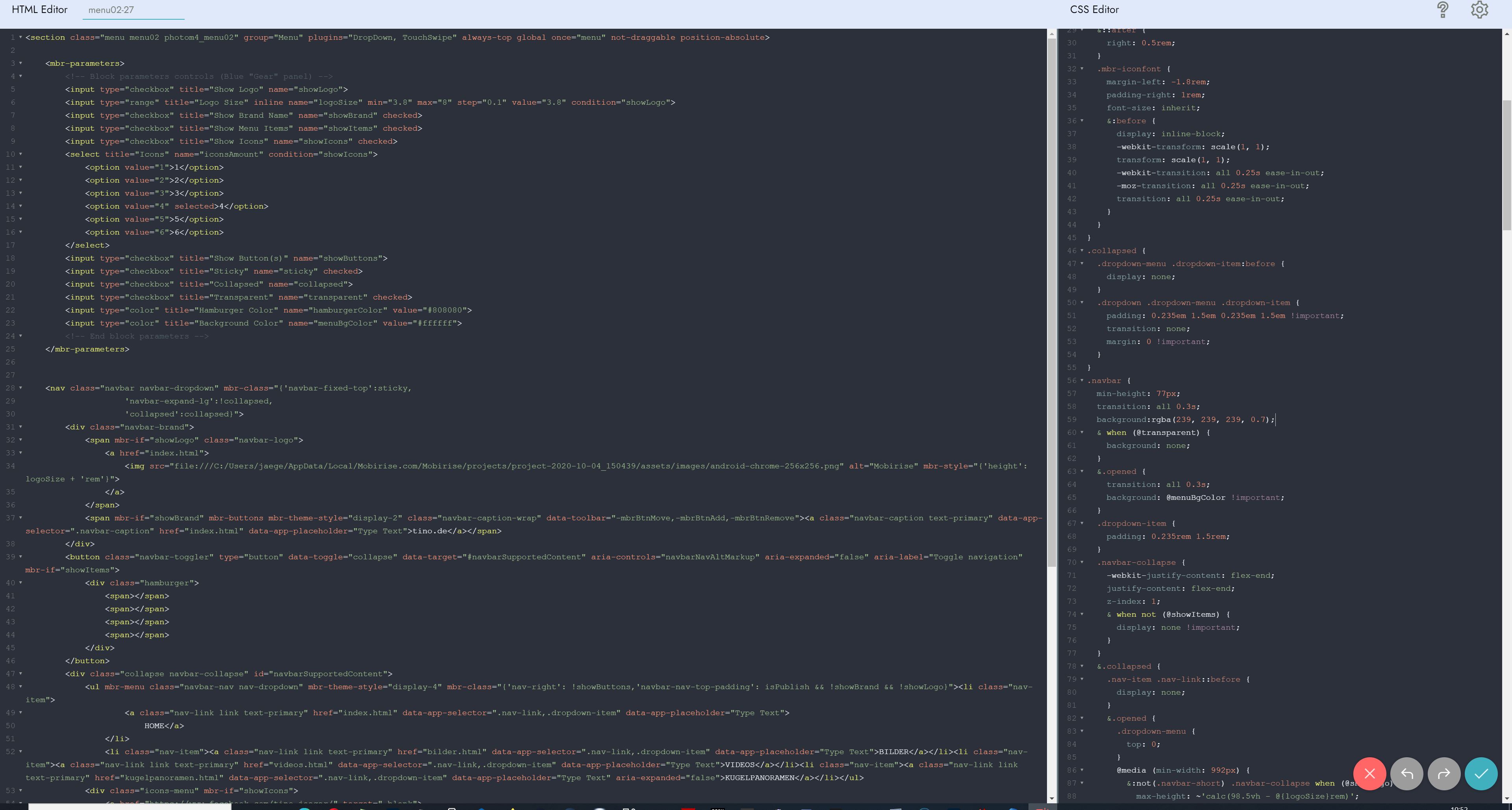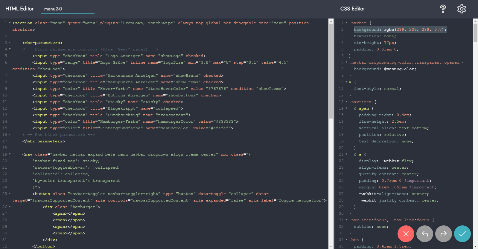 hmm - weiß ja nicht welches Thema Du da am Wickel hast - mein Beispiel ist vom Standard-Thema "Mobirise 4".