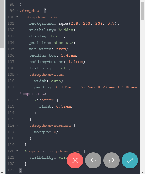 Ich habe die Variable @menuBgColor meiner ursprünglichen Hintergrundfarbe #efefef