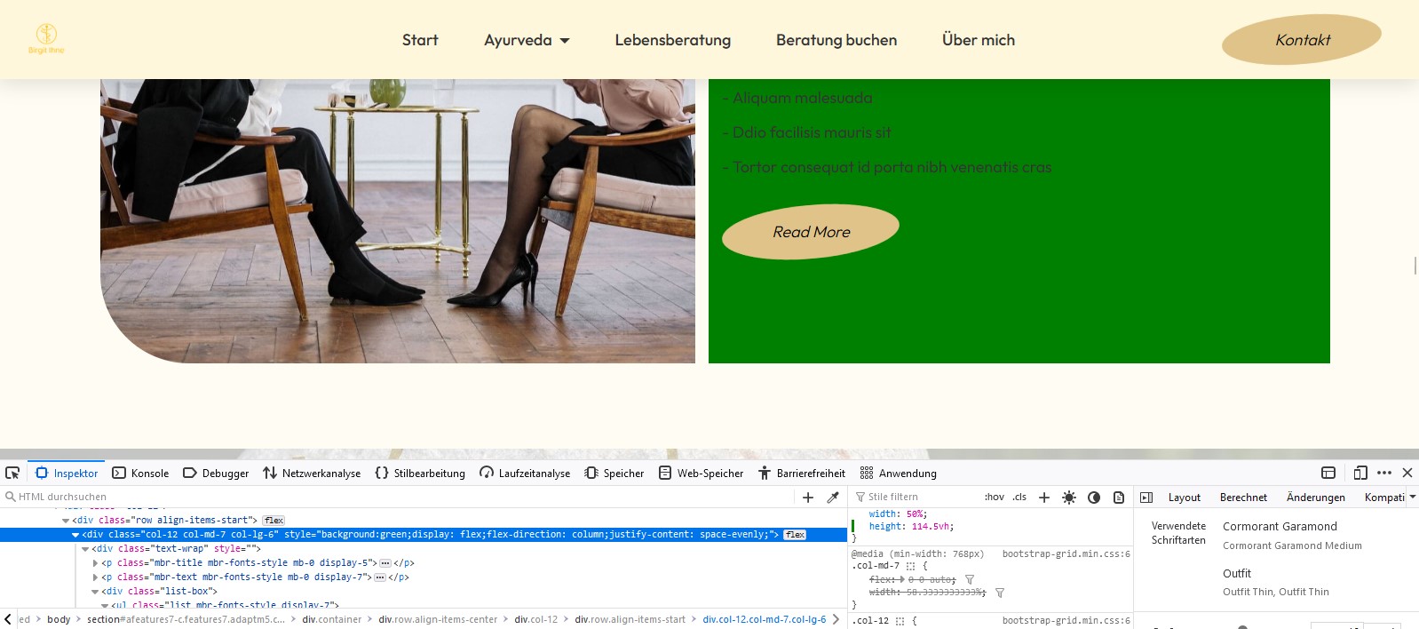 </div>stobi_de hat geschrieben: Do 26. Jan 2023, 17:37 Das eine col-6 des Bildes ist so hoch wie die Row, das Col-6 mit dem Text ist halb so hoch - so hoch wie der text-Container eben. Wie bekomme ich nun die Col mit dem Text-container auf 100% Höhe der Row?