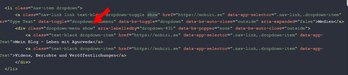 Aus unerfindlichen Gründen fügt Mobi ggf. hier ein "show" ein, was einfach mit dem Codeedi zu löschen ist